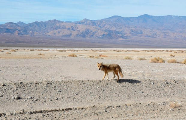 É que, se ver um animal no zoo pode ser uma experiência emocionante e educativa, ter à frente o mesmo animal no seu habitat natural, ainda por cima num como este em que não se avista rigorosamente nada, sabe a dádiva. Porém, o divino pouco tinha a ver com esta prenda visual. Sob o carro onde seguíamos, alguns restos de comida deixados por outro veículo que nos precedera eram o alvo do coiote, provavelmente alarmado perante a possibilidade de lhe ficarmos com o repasto.