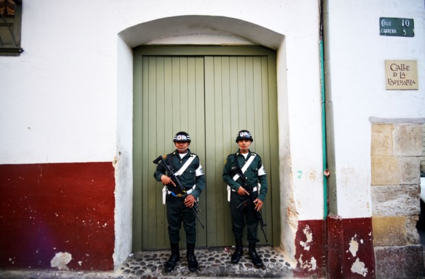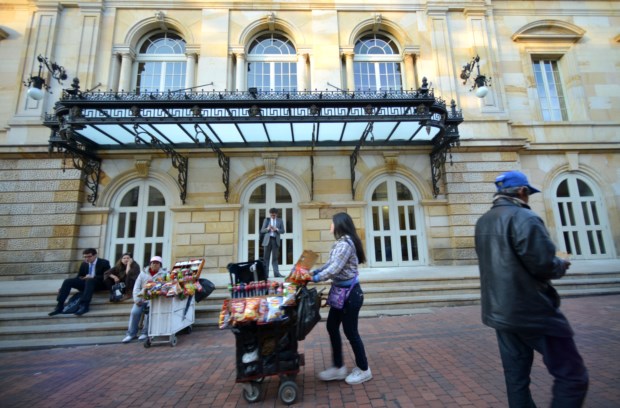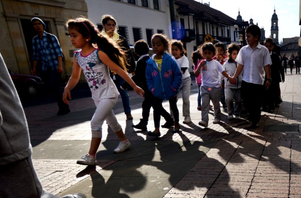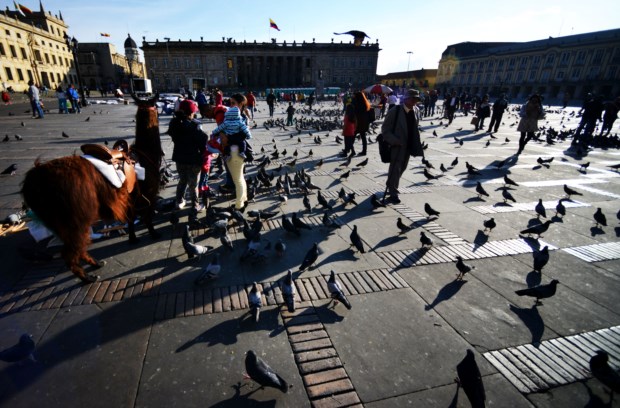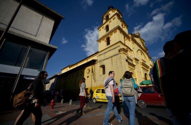 Não é fácil mover-nos em Bogotá porque a cidade é um organismo em crescimento constante — a orientação faz-se de sul para norte, de oriente para ocidente, sendo que ela nasceu num canto agora a sudeste (a maneira mais fácil de percebermos mais ou menos onde estamos é tentar buscar os cumes montanhosos; na Candelária eles são sombra protectora). Numa cidade que viu a sua população multiplicar-se várias vezes ao longo do século XX, tendo recebido muitas vagas de deslocados pela instabilidade que a luta armada entre guerrilheiros e governo provocou no país rural, há áreas imensas cobertas de “favelas” nos seus limites; no seu interior também se vêem, sobretudo quando passamos pela Circunvalar (como nome indica, a artéria que ladeia o centro, rente ao sopé das montanhas, e que nada tem a ver com uma via rápida), onde uma curva nos mostra casario baixo, em tijolo cru ou ocre (muitas vezes em colinas ancoradas em muros de betão construídos para evitar os deslizamentos de terras frequentes) e a outra nos revela prédios modernos, em tijolo maciço (uma matéria-prima “barata, bonita e refractária”), com jardins pelo meio.