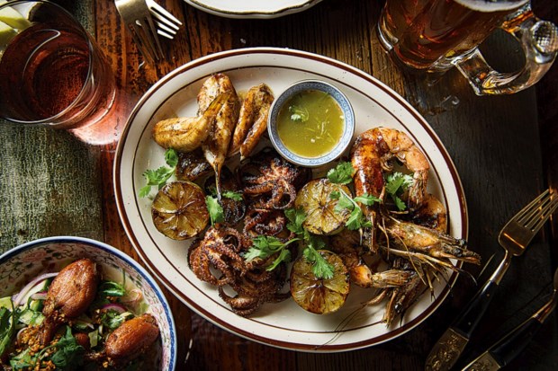 Duas bebidas depois é tempo de rumar ao Uncle Boons, um dos restaurantes mais badalados de Downtown. Continuamos em registo descontraído mas a temática agora é outra. Parece que estamos a ser transportados para o restaurante de um filme de Bruce Lee, versão boxe tailandês. O Uncle Boons pertence ao casal Ann Redding e Matt Danzer, ambos ex-Per Se. Filha de mãe tailandesa e pai americano, Ann nasceu e viveu em ambas as culturas e, tendo o casal passado por restaurantes de cozinha de base francesa, torna-se menos estranho que entre os pratos de raiz deste país asiático haja outros onde se nota uma fusão de culturas, como nos escargots com coco e lima ou nas molejas com salada de massa crocante. “Gosto de vir aqui porque as conjugações que eles fazem são diferentes. Não encontro isto em mais lado nenhum”, diz Frederico Ribeiro. Muitas vezes, nas cozinhas asiáticas do Ocidente disfarça-se a mediania do produto com uma profusão de temperos (alguns bem fortes). Não é o caso. A cozinha de Ann e Matt tem vários elementos no prato, mas a qualidade do produto de base e a mestria como conjugam os ingredientes evidenciam-se.