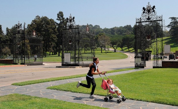 A tarde está quente, mas as árvores cobrem grande parte do cemitério e abrem um túnel na sua avenida principal, que liga o portão ao cruzeiro (vindo do antigo Convento de S. Bento da Avé-Maria, onde é hoje a Estação de S. Bento), na “praça principal”, já ao sol – os cemitérios do século XIX, ditos “românticos”, foram desenhados como cidades e “a parte mais antiga do Prado Repouso pode ser interpretada assim, com vias principais e secundárias, com toponímia…”, explica Ana Paula.