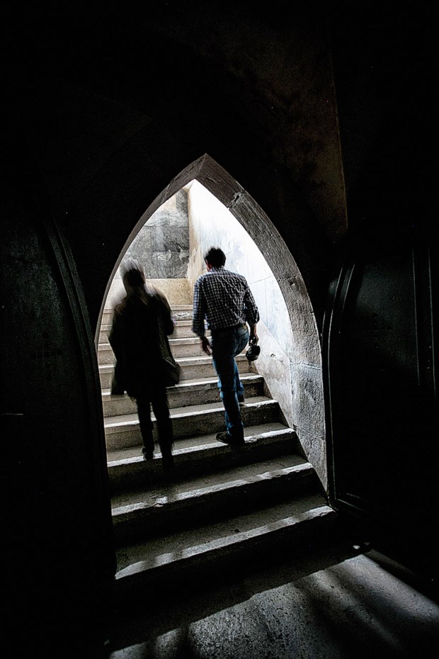 Quando finalmente vislumbramos o seu jazigo já percorremos mais de metade do cemitério – tivéssemos entrado pelo portão principal seria das primeiras coisas que veríamos, com o seu busto, da autoria de Soares dos Reis, a encimar o mausoléu. Regressamos, portanto, à avenida principal para mergulhar no cemitério romântico e perceber a mudança na relação com a morte que aconteceu no século XIX: anteriormente, os mortos eram enterrados de forma mais ou menos anónima nas igrejas, a partir de então o cemitério permite um reduto individual onde a memória dos que partem é para a “eternidade”. “Os cemitérios românticos são para os vivos”, diz Ana Paula, “toda a beleza [na sua construção] é para facilitar a vida a quem fica”.