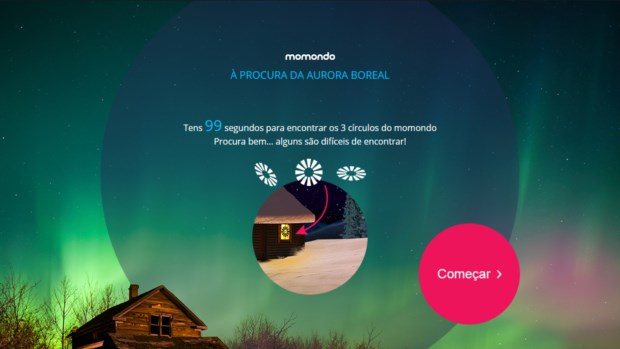 O novo passatempo do site de pesquisa de voos e hotéis Momondo propõe ir "à procura da aurora boreal", primeiro num rápido jogo, onde é preciso encontrar três dos cinco círculos que dão forma ao logótipo da empresa numa "paisagem digital" em menos de 99 segundos; depois "ao vivo", numa viagem à Islândia para duas pessoas. Entre um e outro, uma pergunta: "Acabaste de aterrar na Islândia. Qual é a primeira coisa que fazes?".