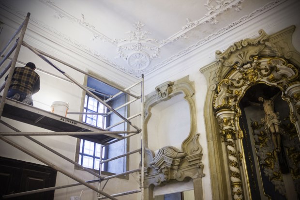A intervenção repôs as cores originais e o brilho da talha dourada Regina Coelho