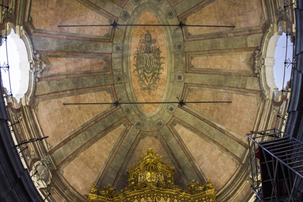 O tecto em cúpula está decorado com pintura de fingimento Regina Coelho