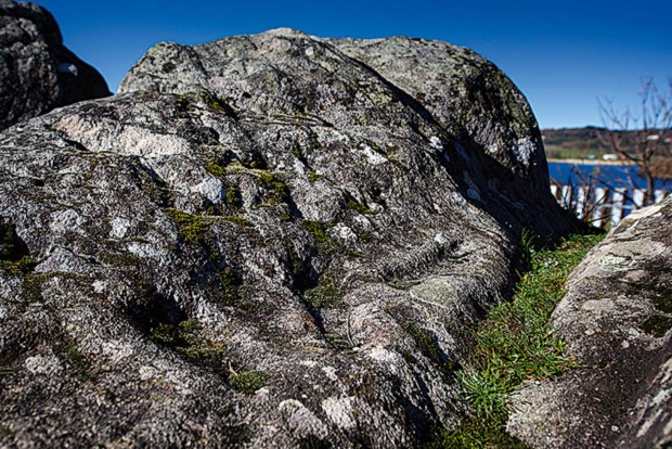 Mas, então, cá estamos junto do metavulcanito da Fraga da Pegada, um dos geossítios já intervencionados (apenas sete dos 42) — painéis montados, condições de acessibilidade e protecção do local. São 540 milhões de anos que se contam no GTC, 540 milhões de anos que começam com o desmembramento de um supercontinente e a abertura de um oceano, Rheic, e o início do Ciclo Varisco, que é o processo geológico que haveria de levar à formação de cadeias montanhosas. Estes metavulcanitos têm cerca de 430 milhões de anos e passaram por um metamorfismo que as diferencia, por exemplo, das rochas vulcânicas que formaram os arquipélagos dos Açores ou da Madeira. Depois da formação destes metavulcanitos, novamente a Terra se haveria de constituir num outro supercontinente, a Pangeia, de onde haveriam de surgir os continentes actuais. Mas por enquanto ficamos com este bloco de rocha protegido por cerca alta de madeira onde outros valores, além dos geológicos, se levantam — neste caso, o outro valor é a arqueologia: este é um sítio de interesse municipal por ter um pedomorfo — uma pegada incrustada na pedra que terá cerca de seis mil anos — e outras gravuras, como cruzes e outros motivos religiosos que fazem crer que estes rochedos eram um santuário. Certo é que no século XIX serviu como ponto de demarcação entre os concelhos de Bragança e de Macedo de Cavaleiros, este ainda a dar os primeiros passos.