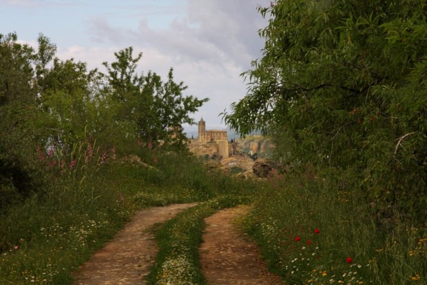 É por aqui que começamos a nossa visita, junto da estátua de El Cid, o Campeador, e aos pés do castelo, antigo alcázar, dentro da Cabra que foi muralhada. Dessas muralhas, resquícios do Al-Andaluz só restam três torres e um pouco do pano (“mantido para decoração”), que no interior guardam ruelas estreitas de empedrados desirmanados a abrir caminho entre casario branco e muros altos manchados de flores que caem nas fachadas — “É bonito, não é?”, pergunta de retórica de mulher que chega a casa.