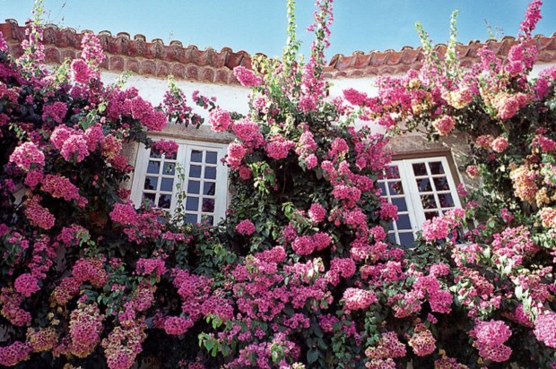 As ruas tortuosas de paralelepípedos vão sendo ladeadas de pequenas casas caiadas de branco, debruadas ora de azul, ora de amarelo, algumas com vãos e janelas manuelinas, quase todas com telhas de barro e decoradas com vasos de flores e plantas trepadeiras, que na Primavera vibram de cor e aroma. As mais emblemáticas são as buganvílias, com o seu rosa-vivo, mas também se derramam pelas paredes alvas madressilvas, gerânios e glicínias, entre outras.