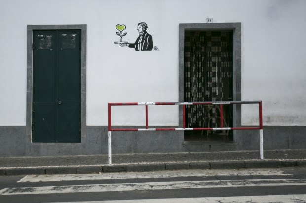 Depois dessa primeira pintura, regressou a Lagoa em busca de mais paredes que pudesse pintar. Começou também a escrever o seu endereço electrónico junto à assinatura. “Boom! Foi uma bola de neve.” Não mais parou de encher São Miguel de flores e corações. No dia anterior à nossa visita, pintara o número 278. “Fi-lo na Caloura. São duas girafas que se beijam”, conta. Faltam apenas 87 para cumprir o objectivo: um coração por cada dia do ano. “Depois acabo. Não posso continuar nisto para sempre”, confessa com uma gargalhada.