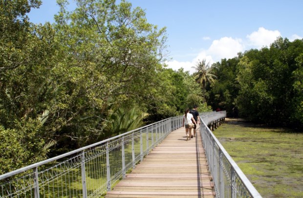 Parto, sob um céu azul, ao início da manhã, em busca de alguns desses recantos, uns mais mediáticos, outros mais conservadores, outros ainda silenciosos, com uma aura de nostalgia para quem conheceu, já lá vão muitos anos, a Singapura que se vai perdendo na memória. O pequeno barco deixa o porto de Changi mal a lotação (12 pessoas) se esgota e rasga as águas também cruzadas por enormes cargueiros antes que se aviste um conjunto de casas rudimentares em madeira, algumas escondidas no meio da densa e colorida vegetação.