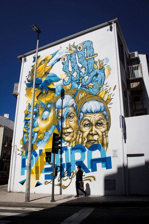 É preciso respirar fundo. Caminhar devagar, apreciar cada fachada, descobrir as casas antigas de varandas de ferro e portas de madeira. Espreitar as mercearias, olhar de novo para o edifício de esquina da Cooperativa do Povo Portuense, inaugurado em 1931, estanhar aquele prédio com as janelas que fazem um ângulo esquisito, como se estivessem a fugir para o interior das casas, e perdermo-nos no azul daquela nova Ribeira Negra, que o colectivo RUA pintou, no ano passado, na fachada lateral do edifício da Churrasqueira Paraíso 1. Um mural lindo, com velhas e lobos, monstros (serão monstros?) e pássaros, que não está verdadeiramente no Paraíso, mas colado a uma das suas esquinas – por isso, é como se lhe pertencesse também. E admirarmos, com um misto de tristeza e esperança, os azulejos coloridos que anunciam a “Padaria Flor do Paraíso de Joaquim de Sousa Menezes”. Porque ela está fechada, mas o edifício também está à venda... Quem sabe não abre ali um novo negócio que volte a espalhar pela rua o cheiro a pão acabado de fazer?