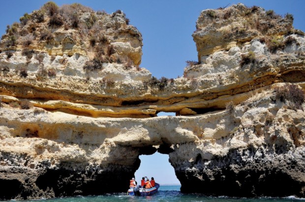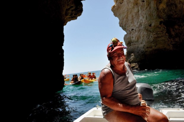 Há mais de 30 anos que José Jorge conduz turistas pelos encantos da Costa d’Oiro, um intrincado rendilhado de falésias douradas, onde a natureza esculpiu grutas, arcos, pequenas praias, enseadas e rochedos solitários de mil formatos. Fazer um passeio pelas grutas de Lagos é antes de mais uma lição de imaginação. Em cada recorte de costa há uma figura para ser descoberta e se à primeira a maioria nos passaria certamente despercebida, quando nos dão as coordenadas certas torna-se quase impossível não as ver, algumas mera lembrança da realidade, outras tão perfeitas que parecem moldadas pelo homem.