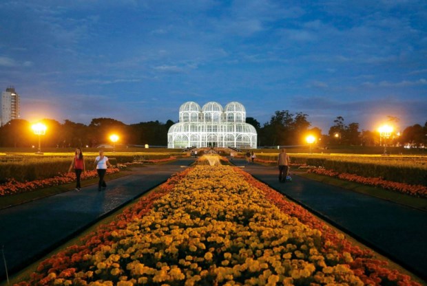 Diz-se mesmo que os parques são a praia de Curitiba, situada num planalto a 934 metros metros de altitude. A manhã está cinzenta, mas o Jardim Botânico está pintalgado de vultos, de grupos. Há quem corra militantemente, há quem passeie descontraidamente, há quem chegue em excursões — e no meio de tudo isto, uma aula gigante de ioga num relvado, com vista para o pavilhão de ferro (pintado de branco), ao estilo do Palácio de Cristal de Londres, que no interior alberga uma estufa e é o topo de um jardim formal.
