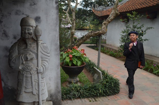 Primeira visita em Hanói: o Templo da Literatura, o mais antigo santuário confuciano da capital vietnamita, edificado há uns bons mil anos. O Van Mieu reedita a planta dos jardins e pátios do Kong Miao, o grande templo de Confúcio da cidade natal do filósofo, Qufu, na província chinesa de Shandong. É um oásis de serenidade, arquitectura idealizada para suscitar uma percepção de harmonia entre natureza e cultura — e não fosse o ruído do trânsito, ainda que distante, não seria difícil sentirmo-nos transportados para a velha Qufu.