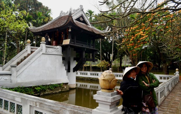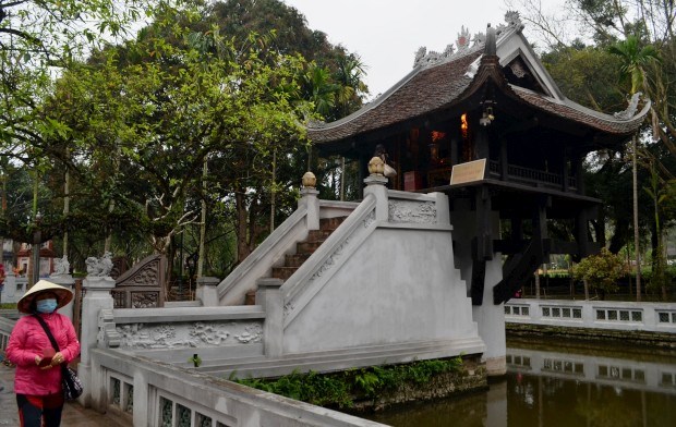 Do outro lado do mausoléu, por milagre ou banalidade que os deuses vão escrevendo sobre as linhas oblíquas dos quotidianos humanos, os vietnamitas têm um dos templos mais ilustres para exercício da sua religião — uma religião que se considera de base budista (Mahayana), mas que incorpora elementos do taoísmo e do confucionismo. Dir-se-ia, antes, um sistema de crenças compósito, designado na língua vietnamita por Tam Giáo, que tem como traço relevante o culto dos antepassados e que funde nesse culto subsídios de outras crenças tradicionais vietnamitas. O templo é o famoso pagode assente num único pilar, em forma de flor-de-lótus, uma construção singular em toda a Ásia. Edificado há quase mil anos, foi destruído pelos franceses no fim da era colonial e reconstruído logo a seguir, reafirmando-se como pólo de peregrinações que têm tanto de religioso como de turístico. Ora-se ali pela fortuna e pela fertilidade, simbolismo que as mitologias orientais colaram à pele da flor-de-lótus. A atmosfera em volta é francamente popular, com barraquinhas cheias de bugiganga religiosa e incenso e estendais de aromática fruta tropical – mangas de fogo, o abominável durian, líchias a rescender a água de rosas.