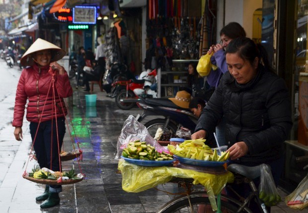 O comércio é exuberante e (quase) caleidoscópico: o das lojas, em número de largas centenas, e o dos vendedores ambulantes, sobretudo mulheres de andar balouçante sob o peso das varas plantadas sobre os ombros e com os cestos carregados de fruta, legumes, flores ou outra mercancia. Deixam-se fotografar pelos turistas, que lhes compram qualquer coisa por um punhado de dongs, e sorriem: nada deixa adivinhar a vida agreste destas mulheres — originárias, muitas, do meio rural —, o quotidiano enredado e penoso que começa de madrugada e se estende até ao entardecer, para conseguirem sustentar as famílias. No excelente Museu da Mulher Vietnamita, numa rua não muito longe do lago Hoàn Kiém, pode-se ver um interessante documentário sobre estas heroínas das ruas de Hanói. O que nele se narra é, verdadeiramente, um predicado de determinação e de resiliência das mulheres de Hanói, que outra coisa não é senão uma qualidade estrutural do povo vietnamita. E, nesse sentido, o museu pode ser uma notável introdução ao país que a antiga Cochinchina é hoje.