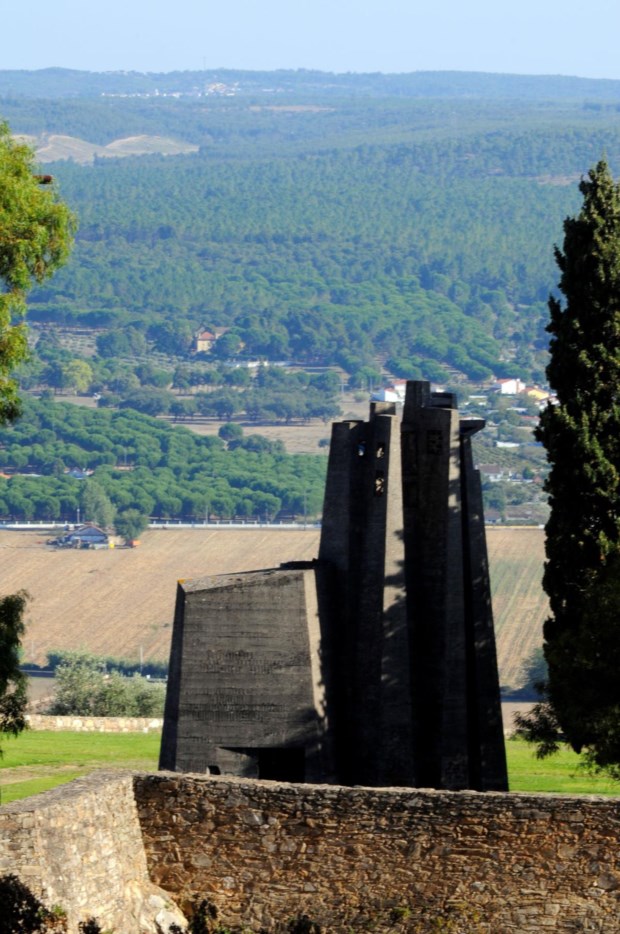 Os muros do baluarte em xisto servem-lhe de enquadramento. São baixos e quase podiam ter saído de um desenho contemporâneo, pois a inclinação e as aberturas para os canhões que serviam a defesa da cidade têm linhas minimalistas, despojadas e, mesmo só com intenções funcionais, conjugam-se na perfeição com o monumento, que, esse sim, é todo ele modernista.