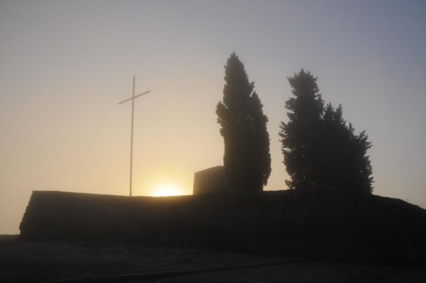 Foi aqui, onde a imensa vista se mistura à emoção, que se deu o momento de viragem de Portugal: para aqui se chamaram os homens para juntar forças e resistir aos assaltos do inimigo, aqui se organizaram as tropas vindas desta planície vasta cortada pelo curso do Tejo, aqui se celebrou a missa e se exortaram os homens antes da partida para Aljubarrota. É dessa missa, desse momento de união e de submissão a um Deus protector que fala este monumento e fala ainda com muita eloquência, mesmo assim cheio de grafitti, com os mosaicos partidos, já sem as letras de cobre que contavam esta bela história e sobretudo com a estátua de Nuno Álvares desaparecida.