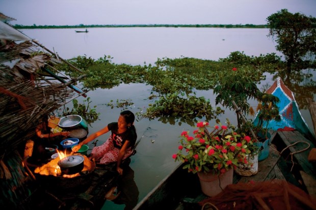O Tonlé Sap, classificado como Reserva da Biofera desde 1997, é tudo para esta gente. Não é apenas a maior reserva de água doce do Sudeste Asiático; é também uma imensa reserva de pesca, uma das mais fecundas do mundo. Está agora ameaçado pela pressão excessiva das actividades piscatórias – tragicamente o único recurso disponível para as populações das aldeias flutuantes dispersas pelo lago. O governo legisla constrangimentos, reproduzindo as lógicas de conservação habituais entre os sítios classificados como Reserva da Biosfera – mas sem outros programas de compensação eficazes, o ciclo de pobreza tende a agravar-se. Num tão belo cenário, de abundância ameaçada, o que não fica nas imagens digitais dos viajantes em trânsito é o que Wang Jian, um jornalista de Singapura que segue também a bordo do Chann Na, sintetiza no que para ele poderá ser o título adequado para a reportagem que tenciona escrever para um jornal de Singapura: The dark side of the lake.