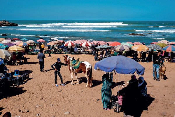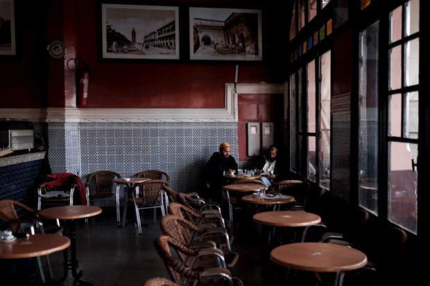 Num dos lados da praça, o Café des Épices desenrola-se em vários pisos, terminando num terraço no topo, para o qual subimos, à procura de um lugar com vista perfeita sobre a praça. Encontramo-lo com facilidade. Descobrimos a geometria do mercado montado na Rahba Lakdima, mas descobrimos muito mais. Entre um chá de menta e um sumo de laranja, erguemos o olhar para os telhados à nossa frente e para a cordilheira Atlas, lá atrás, perfeitamente visível e coberta com a neve dos últimos dias.