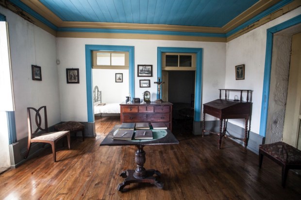 Maria Manuela, 75 anos, mora a dois passos da casa de Ferreira de Castro. Guarda as chaves da casa-museu há 45 anos, é a guia de serviço, e não esquece as visitas de Jorge Amado, José Saramago, Assis Esperança àquela habitação – e de outros políticos como Ramalho Eanes ou Mário Soares. Abre a porta do rés-do-chão para mostrar o lagar e os pipos e para lembrar que antigamente aquele piso era de terra batida. Abre o portão e mostra a placa que assinala que naquele lugar, ao lado da casa, existia um forno a lenha, o curral da cabra e um pombal. E sobe as escadas de pedra para abrir a porta de madeira velha. “Passava aqui horas sentado. Gostava muito de ficar sozinho a pensar”, recorda.