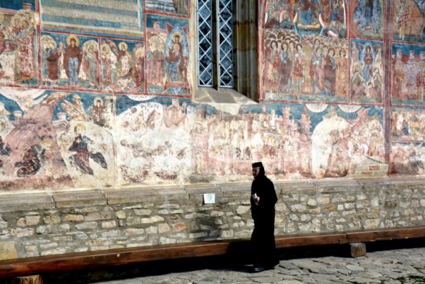 A manhã ainda revelava timidez quando cheguei a Humor, a escassos seis quilómetros de Gura Humorului, uma cidade que cresceu graças à queda do regime de Nicolae Ceausescu e ao consequente incremento da indústria do turismo, fortemente associada aos mosteiros, integrados, alguns deles, na lista de Património Mundial da UNESCO desde 1993. Mal se transpõe a porta, uma espécie de magnetismo atrai, de forma instantânea, o viajante, da mesma maneira que uma história aos quadradrinhos seduz uma criança — naquelas paredes, encimadas por tectos em forma de chapéu de abas largas, estão retratadas cenas da vida religiosa e, quadro a quadro, obrigando os olhos a não se desviarem de um percurso, reportam a essência do universo ortodoxo sem esconderem a forte influência bizantina.
