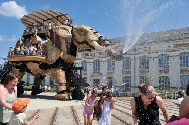O gigante paquiderme mecânico foi o primeiro projecto das Machines de l’Île, em 2007, e é desde então uma das principais atracções turísticas da cidade. É o símbolo da nova Nantes, unindo passado e futuro da cidade. A inspiração nas viagens extraordinárias de Júlio Verne (o filho mais famoso de Nantes, nascido em 1828 num edifício da Cours Olivier de Clisson) é a mais evidente. Como não imaginar de imediato a cena de A Volta ao Mundo em 80 Dias em que Phileas Fogg e Passepartout resgatam Aouda, fugindo a trote num elefante pelas florestas indianas?