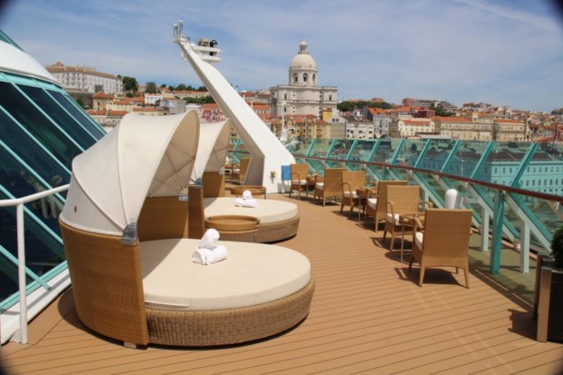 Feito o brinde à efeméride, era altura de zarpar do Tejo e começar a sentir o pulso ao navio - de 12 cobertas e capacidade para 2.766 passageiros - que foi alvo de uma profunda remodelação, em 2013. Segundo a empresa, a intervenção estendeu-se a praticamente todas as áreas do navio, sendo que um dos up grades mais visíveis assentou na criação de uma área mais exclusiva e destinada a clientes mais exigentes, o The Waves Yatch Club. Um clube de “primeira classe”, destinado aos passageiros instalados nas suites ou aos que queiram pagar um valor extra (na ordem dos 30 euros por dia), que garante um tratamento especial: mini buffet que inclui pequeno-almoço, almoço, jantar, snacks e bebidas durante todo o dia; internet grátis; e embarque e desembarque prioritário. Com uma decoração requintada no interior, o The Waves Yatch Club dispõe ainda de um espaço exterior distinto, com camas balinesas que convidam a prolongados banhos de sol.