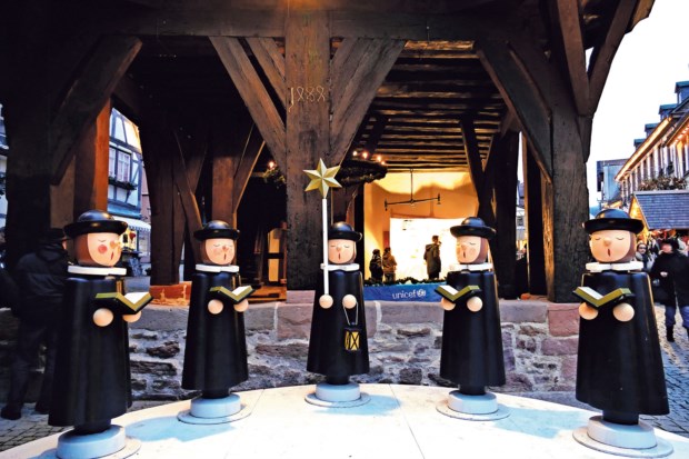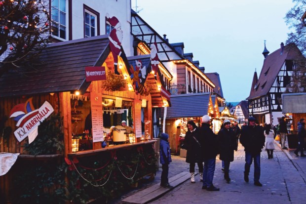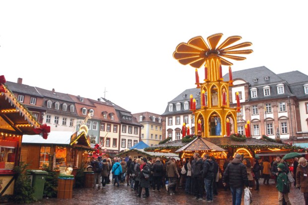 Em Heidelberg, o mercado de Natal são seis mercados que se sucedem nas praças que se abrem ao longo da Hauptstrasse, que, com os seus 1,6 quilómetros, é a mais longa rua pedonal do país. Na verdade, é semipedonal, e nas fachadas que transitam entre a renascença e o barroco alinham-se lojas, desde as mais tradicionais às grandes cadeias, passando por restaurantes e bares, tudo complementado por bancas de pretzels e artistas de rua. E, durante o Advento, por algumas barraquinhas de madeira que “escapam” às praças e trazem o Natal à rua principal, profusamente iluminada e com algumas montras repletas de decorações tipicamente germânicas.