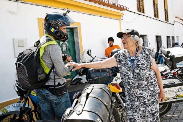 Acontece em muito lado. Homens e mulheres, velhos e novos aproximam-se da caravana para meter conversa. Quase sempre para dizerem que gostariam de fazer um grande passeio de moto, para discutir trajectos, dar dicas sobre locais de interesse turístico, relançar a eterna discussão sobre quais são melhores, as motos germânicas ou as nipónicas… Uma coisa é certa. Há um país a que só se chega assim, de moto. Em comunhão com as estradas, a aprender-lhes os cheiros dos campos e dos bosques, e com as pessoas que as habitam, a ouvi-las e a falar-lhes. É um país que se arrisca a ser imperceptível para quem viaje sempre fechado num automóvel. Ninguém meterá a cabeça dentro de um carro alheio para confraternizar.