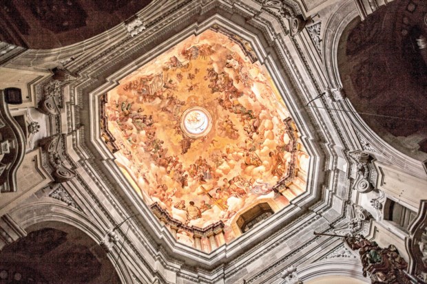 Na altura, devia ter uns 11 anos e o edifício ainda servia para formar sacerdotes. O Seminário Maior foi uma escola de padres durante quase 250 anos, mas deixou essa função em 2012 (a crise também se encontra nas vocações). O padre Nuno Santos, hoje reitor do seminário, abriu as portas ao público em Junho, para mostrar um edifício de arquitectura italiana que, não será arriscado dizer, a grande maioria da população de Coimbra desconhecia. Mesmo que o Seminário esteja bem no centro da cidade, ao lado do Jardim Botânico. No entanto, a imagem que mais se fixará na memória de quem visita este espaço é a cúpula da Igreja da Sagrada Família. É o último dos oito pontos de interesse em que o percurso pelo Seminário Maior pára. É também o mais impressionante, com frescos do artista italiano Pascoal Parente que retratam a ascensão e coroação da Virgem Maria.