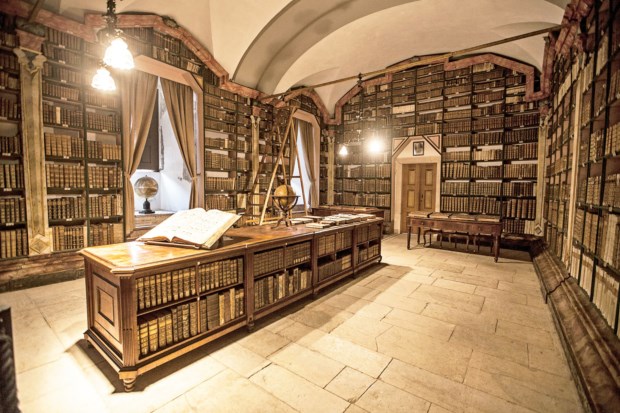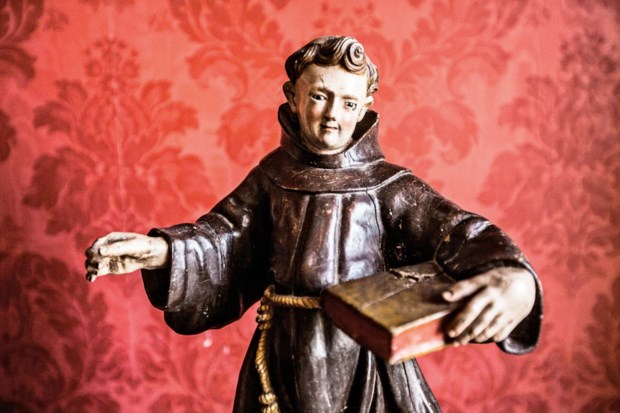 A primeira paragem é o refeitório. Cenário aparentemente austero, onde salta à vista um púlpito, utilizado para leituras durante as refeições. Hoje revestidas com toalhas, “as mesas eram de mármore de Carrara”, diz o padre Nuno Santos, que fez a vez de guia à Fugas, em tom de lamento. “Foram dadas e vendidas, numa altura em que ainda não se valorizava”.