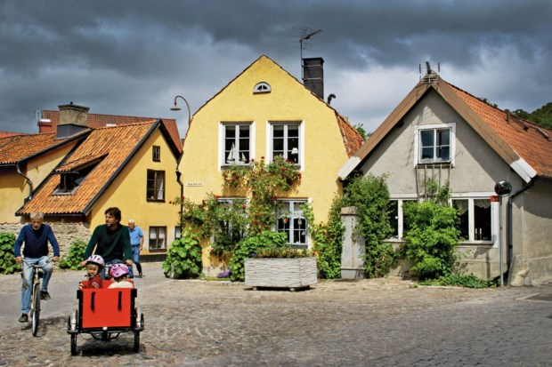 São também de finais do século XVIII as casinhas térreas que se cruzam com o meu olhar na Strandgatan, todas em madeira (com postes na vertical e tábuas na horizontal), pintadas com cores fortes e tão características da paisagem de Gotland. No passado, eram referidas como casas dinamarquesas e é bem possível que esta tradição de construção se deva ao longo período em que o país viveu sob o jugo do vizinho - mas a posterior moda de levantar edifícios em pedra também se ficou a dever à criação, em 1757, de uma lei que isentava os contribuintes que optassem por este material, uma medida que visava a preservação da madeira.