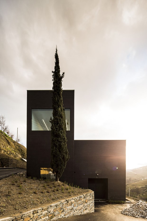 Quem vai de Vila Real pela Cumieira é confrontado a dada altura com a visão ao fundo de um edifício negro plantado em forma rectangular mesmo junto à estrada. A geometria rectilínea da nova adega da Quinta da Gaivosa, a sua cor e a enorme pala pendurada ao centro possuem uma força extraordinária no contexto do vale, cujo elemento físico dominante é a silhueta do Marão — o rio Douro corre uns montes abaixo, mas perscruta-se nas águas do afluente que corre a pouca distância.