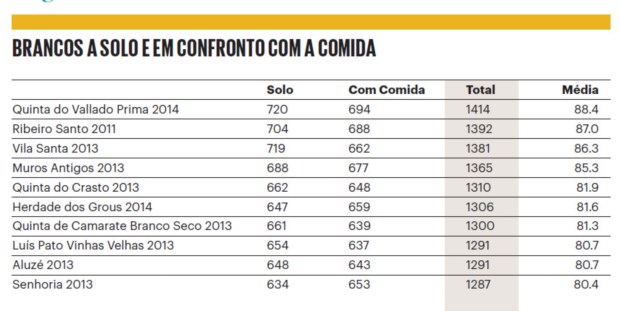 O habitual painel de provadores da revista considerou que o Quinta do Vallado Prima 2014, feito em exclusivo de Moscatel Galego proveniente de duas vinhas do Douro, foi o melhor vinho em competição. Contra todas as previsões, foi também o segundo vinho que manteve uma média de votação mais aproximada – numa escala de zero a 100, a diferença entre a pontuação mínima e a máxima foi apenas de nove pontos. Mais: mereceu essa distinção não apenas na prova a “solo”, como na avaliação posterior com comida.