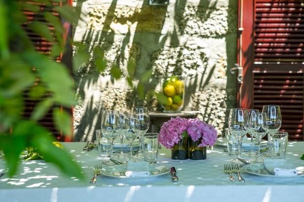 Ao longo do caminho que leva à antiga casa do caseiro – agora recuperada e que deu lugar a um pequeno núcleo de casas, entre elas a adega onde o vinho é engarrafado – há muitas árvores de frutos, dos limoeiros aos marmeleiros, das macieiras às cerejeiras, passando pelas pereiras. A vinha ocupa 17 hectares.