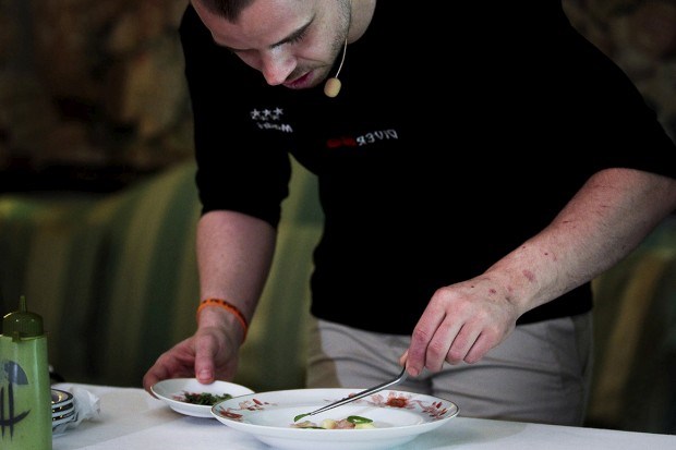 “Nunca me importei nem com críticos gastronómicos nem com guias”, garantiu o cozinheiro numa breve conversa com o PÚBLICO no final da apresentação, na qual fez um prato inspirado em Portugal, com sames (bexiga natatória) de bacalhau, sashimi de carabineiro marinado (e ainda o líquido da cabeça deste, “o melhor dos molhos mediterrânicos”), malaguetas, manjericão tailandês, lima kaffir e trufa. “Estou muito feliz com as três estrelas Michelin, claro, mas nunca as procurei. Nem a primeira, nem a segunda, nem a terceira. Talvez seja esse o segredo”. E, no entanto, elas chegaram muito rapidamente.