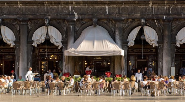 As esplanadas da Praça de São Marcos são uma verdadeira tentação. Todas escandalosamente apetecíveis, com as suas mesas e cadeiras harmoniosamente dispostas a entoarem o chamamento da sereia.