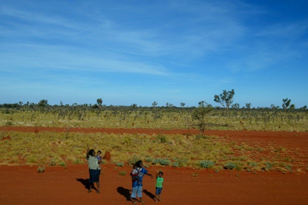 No deserto a norte de Alice Springs, um grupo de aborígenes acena para o comboio Tim Wimborne/Reuters