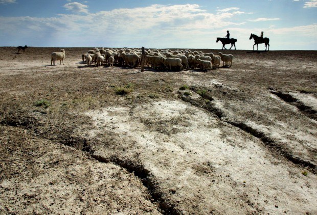 A guardar o rebanho de ovelhas em campos marcados pela seca. Em Brewarrina, a 800km de Sydney David Gray/Reuters
