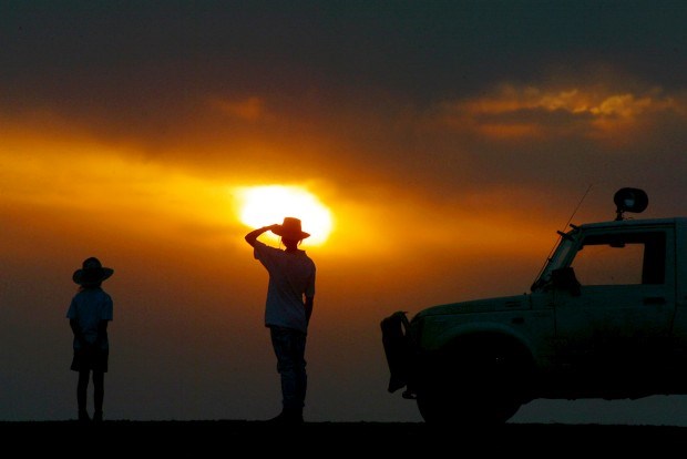 Ao nascer do sol, a inspeccionar o terrenos antes de corridas de cavalos em Birdsdville, a 1400km de Brisbane Peter Wallis/Reuters