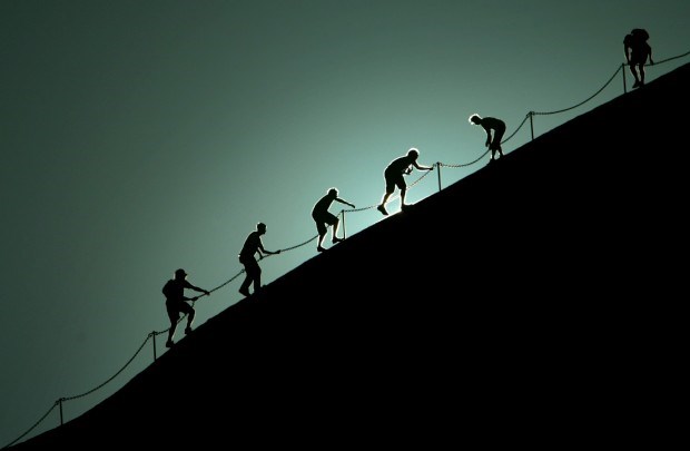 Turistas sobem, com a segurança da corda, pelo Uluru Tim Wimborne/Reuters