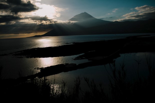 Com o espírito sempre a ascender à mais alta montanha de Portugal, viajamos o olhar por esta ilha açoriana delineada a verde e preto, a vinha, arvoredo e lava.