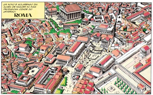Não surpreende, por isso, que os encontremos a seguir em Roma para tentar realizar uma missão impossível: levar a coroa de louros de César para a aldeia. É este o tema de Os Louros de César (argumento de René Goscinny e desenho de Albert Uderzo), décimo álbum da colecção Astérix à volta do Mundo (distribuído com o PÚBLICO a 27/12, disponível na loja online).