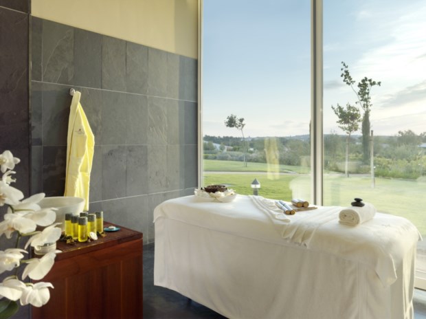 Mas, por estes divinos oito hectares, não falta que fazer. Não só pelos restaurantes (Divinus, na antiga adega, e Claustrus — para refeições estivais nos claustros) ou pelos bares (Pulpitus, interior e íntimo, e Cisterna, o bar de vinhos). Outra das grandes atracções é um premiado spa (já considerado um dos melhores de Portugal e da Europa, tal como todo o hotel), baptizado de Diana como a deusa que marca o imaginário eborense. Nós fizemos a experiência com uma massagem que nos pôs em sintonia perfeita com a calma alentejana. Foi mesmo antes de um mergulho na piscina interior e panorâmica, um salto ao pequeno jacuzzi anexo e passagens pelos retemperadores banho turco e sauna. Nós ficámo-nos pela massagem mas sublinhe-se que no spa pode fazer-se muito mais, entre tratamentos desintoxicantes, corporais e faciais, massagens específicas, hidroterapia ou mesmo acupunctura e até programa especial para os mais pequenos ou futuras mamãs.