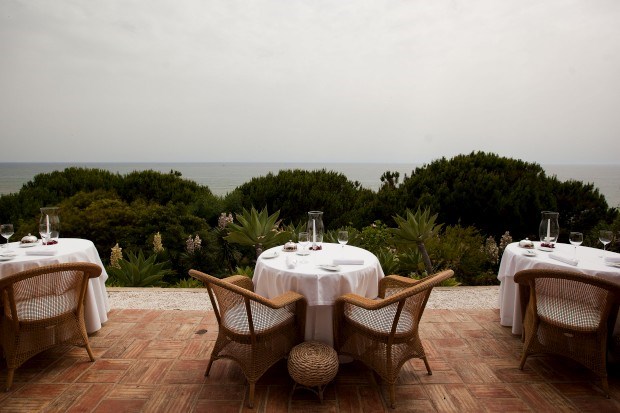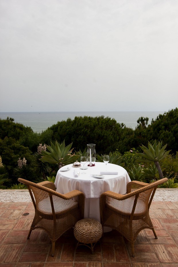 É a vista do mar que impressiona. O hotel não parece um hotel, o portão que nos separa da estrada não tem bandeiras, placas douradas ou estrelas. E mesmo quando a porta automática nos deixa entrar, é difícil acreditar que esta é uma das jóias algarvias. Mobiliário simples, elegante, chão de tijoleira a brilhar, sofás pretos e castanhos e dois pássaros numa gaiola que chilreiam como uma banda sonora estridente.