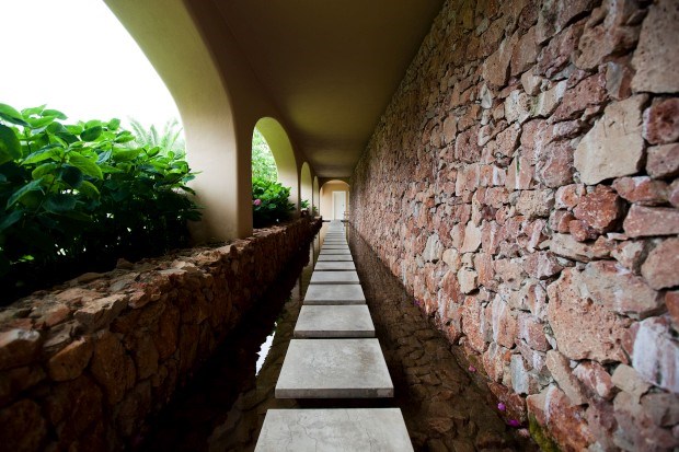 O deslumbre só acontece quando se olha em frente, para além do hall, e se avista o horizonte e o mar azul. Só aí se percebe porque é que não são precisos luxos dourados ou entradas imponentes para fazer deste um local de... luxo. Simples. Sem manias. A luz que entra na sala, ao fundo, vinda do mar, é aproveitada em cada quarto ou esquina do hotel, envolvendo o edifício de uma ponta à outra. Klaus e Cláudia Jung vinham passar férias ao Algarve no que é hoje o Vila Joya.