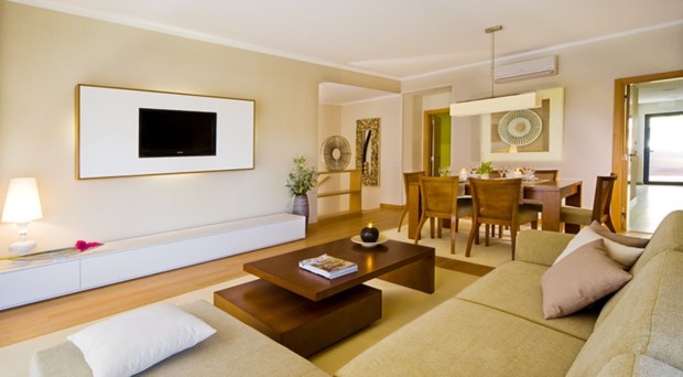 “Olhão era um destino desconhecido, mas foi uma boa aposta porque estamos no coração da ria Formosa, onde há canais na maré baixa com interessante fauna e flora, e numa cidade muito típica, cada vez mais difícil de encontrar no Algarve”, defende João Máximo, director-geral dos dois Real Marina. Hotel e apartamentos vivem lado a lado: num há quartos e todas as comodidades de um cinco estrelas, noutro apartamentos onde cabe a privacidade e o conforto de até oito pessoas (T3 com seis adultos e duas crianças). Um foi criado a pensar em casais e estadas profissionais, o outro para equipas de trabalho e sobretudo famílias ou grupos de amigos com os respectivos filhos, “uma grande fatia do mercado no Algarve”. Partilham a recepção (no Real Marina Hotel & Spa), mas tudo o resto é independente. Até a decoração, a cargo de Graça Viterbo, procura acentuar as diferenças. No hotel os quartos são sobretudo em tons de branco e azul, nas residências são as cores terra que imperam.