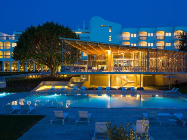 Apesar de ficar em plena Estrada Nacional Nº125 (via que liga o Algarve de uma ponta à outra), quase passamos por ele sem o ver, recolhido entre as muitas árvores que o circundam. A entrada corta a vista em duas: de um lado tudo é serra e vegetação miúda, do outro algumas povoações brancas por entre o verde e o oceano ao fundo. Para chegar às praias – a ilha de Cabanas é a mais próxima – serão precisos cerca de 10 minutos de carro (o mesmo que para o centro de Tavira). O hotel tem transporte gratuito para a praia de Cabanas, incluindo a travessia de barco. Depois é só escolher o pedaço deste liso areal de sete quilómetros onde mais lhe apetece esticar a toalha e relaxar entre o sol quente e a água amena.