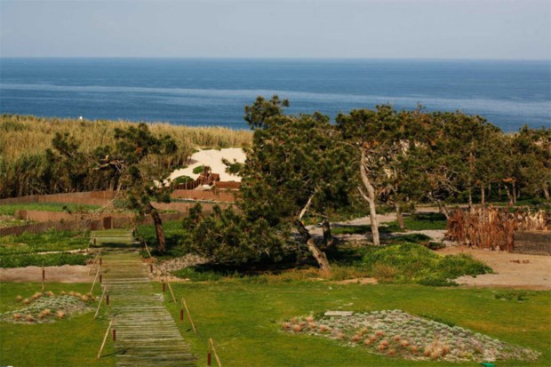 A entrada no hotel faz-se por uma ponte sobre água, onde flutua uma pequena canoa e onde até se pode relaxar ao sabor do movimento de dois baloiços. À direita, surge o spa, também aberto ao público, com sauna, banho turco e com acesso à piscina exterior aquecida, além de duas salas de tratamentos, duche vichy e sala de relaxamento. À esquerda, o Lugar da Horta, composto por bar, restaurante e mercearia, cuja frente em vidro, do chão ao tecto, se abre para uma esplanada com vista sobre pequenos jardins (que, surpresa!, se revelariam depois serem tectos dos quartos) e sobre as dunas, com o mar como quadro vivo de fundo.