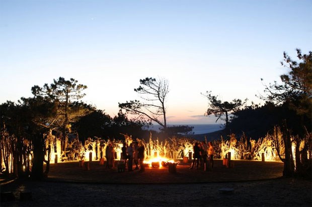 Por aqui, o que falta em voluntária ostentação sobra em voluntário bom gosto. Cada elemento decorativo quer-se único e cada pormenor revela criatividade e capacidade de reciclagem ao longo de todo o processo: mesas em madeira robusta, cadeiras renascidas em cores vivas, estampados coloridos ou um lustre de tecto que poderia sugerir tratar-se de uma instalação artística mas que não passa do aproveitamento das chapas de cobre que o vento de Dezembro arrancou. Um temporal, quem diria!, que acabou por revelar-se um aliado na decoração de todo o espaço - quer com as referidas chapas, quer com as madeiras aproveitadas das árvores quebradas ou com as raízes arrancadas que formam lá fora o Círculo de Fogo, em cujo centro uma fogueira promete arder em fins de tarde tão descontraídos quanto com potencial romântico...